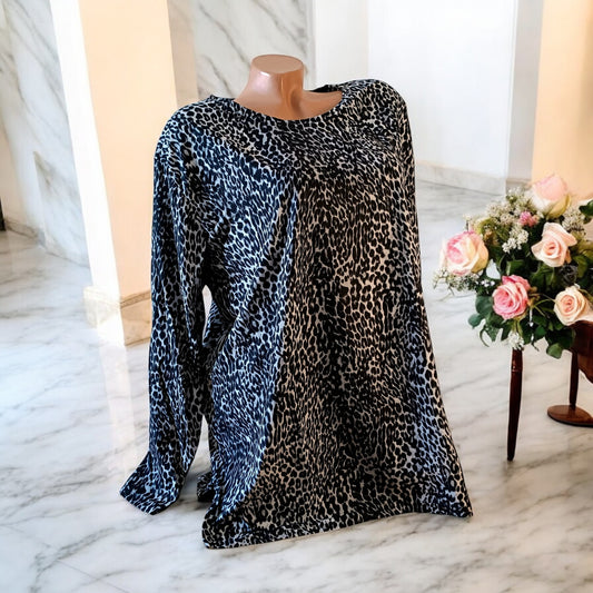 Preț obișnuit 80,00 lei RON Preț la ofertă 45,00 lei RONBluza cu imprimeu marime mare 6-7XL maneca lunga